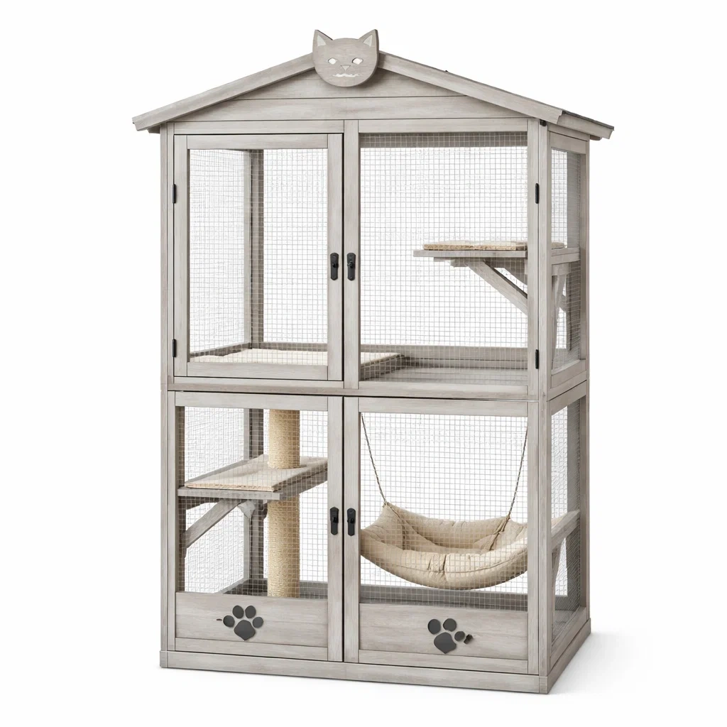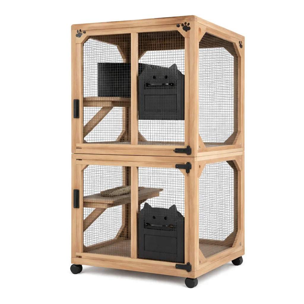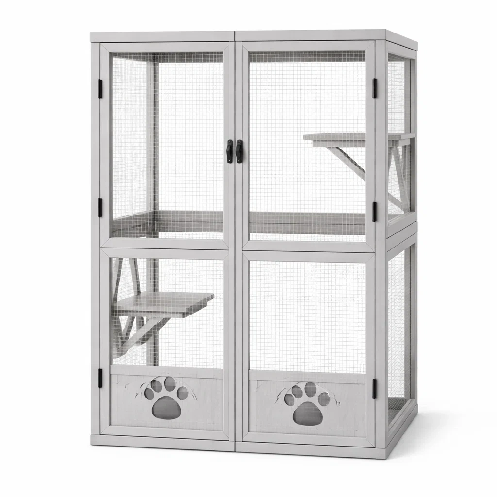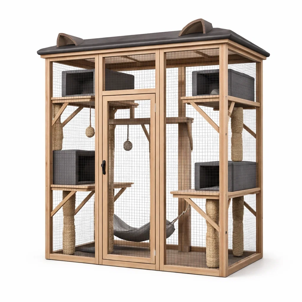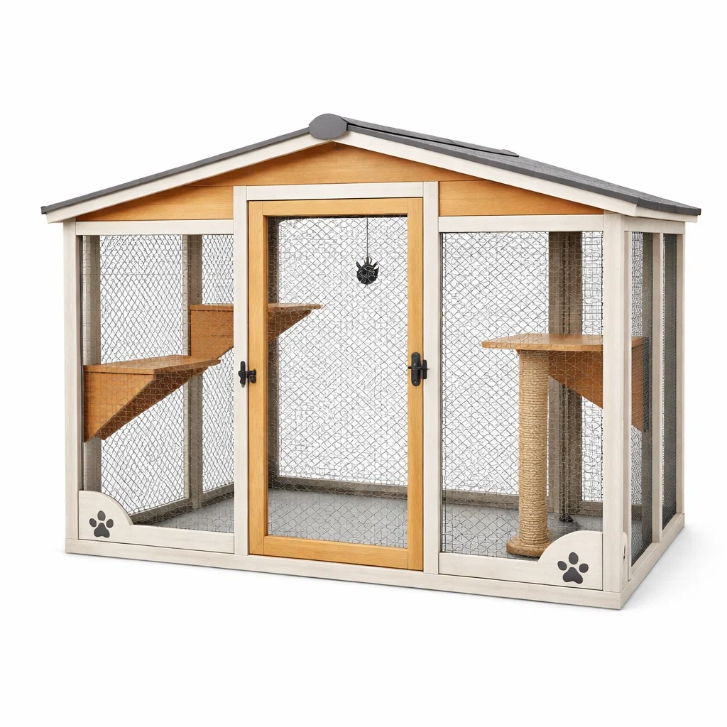 Enclos pour chat en bois avec filet métallique