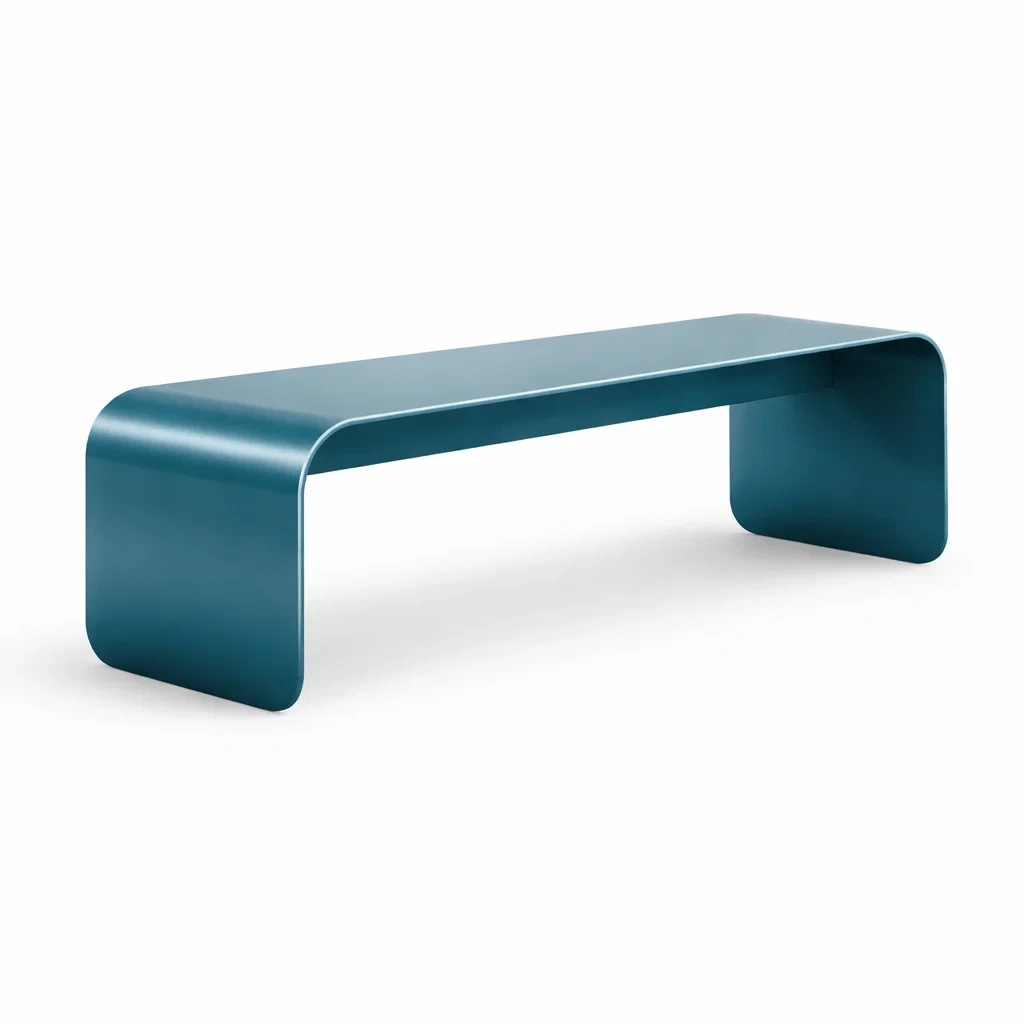 Le banc est fabriqué en acier robuste, offrant solidité et stabilité. Sa forme rectangulaire convient aux environnements intérieurs et extérieurs.