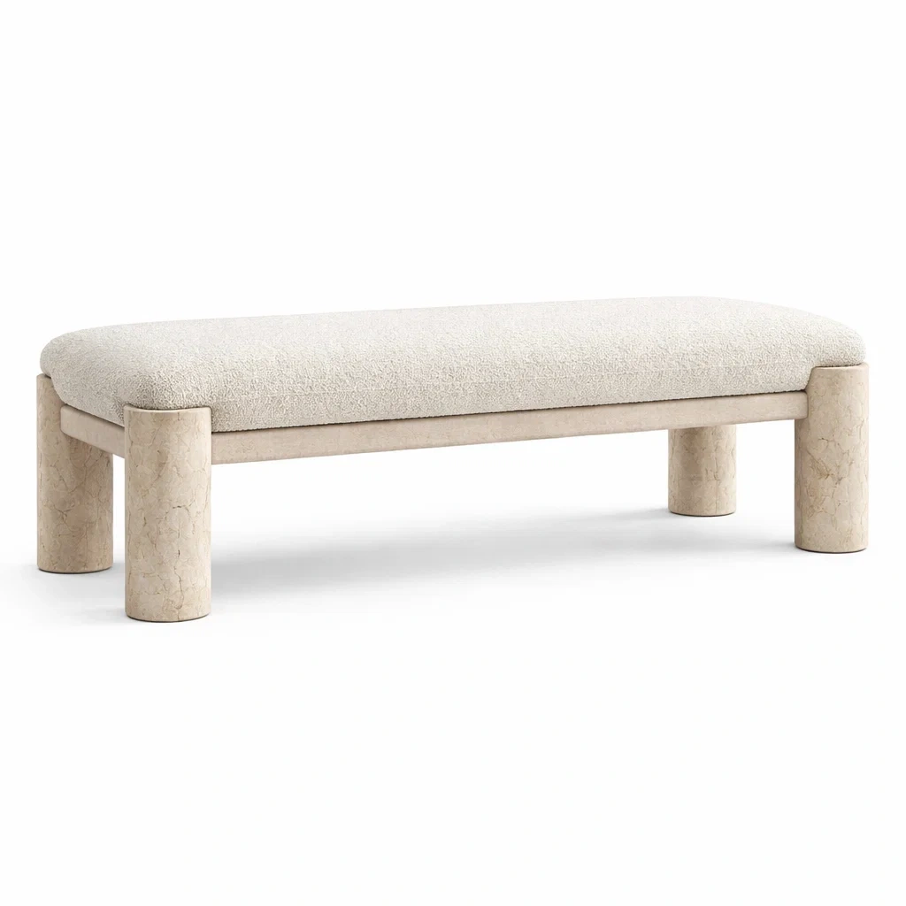 Banc en pierre de marbre et tissu polyester blanc 120 x 40 x 45 cm