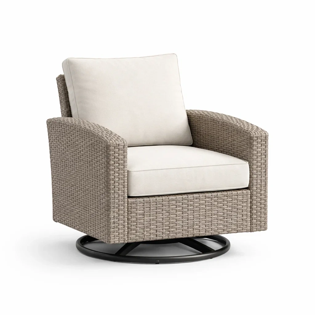 Matériau: Résine tressée, coussins en tissu polyester, structure en acier.
