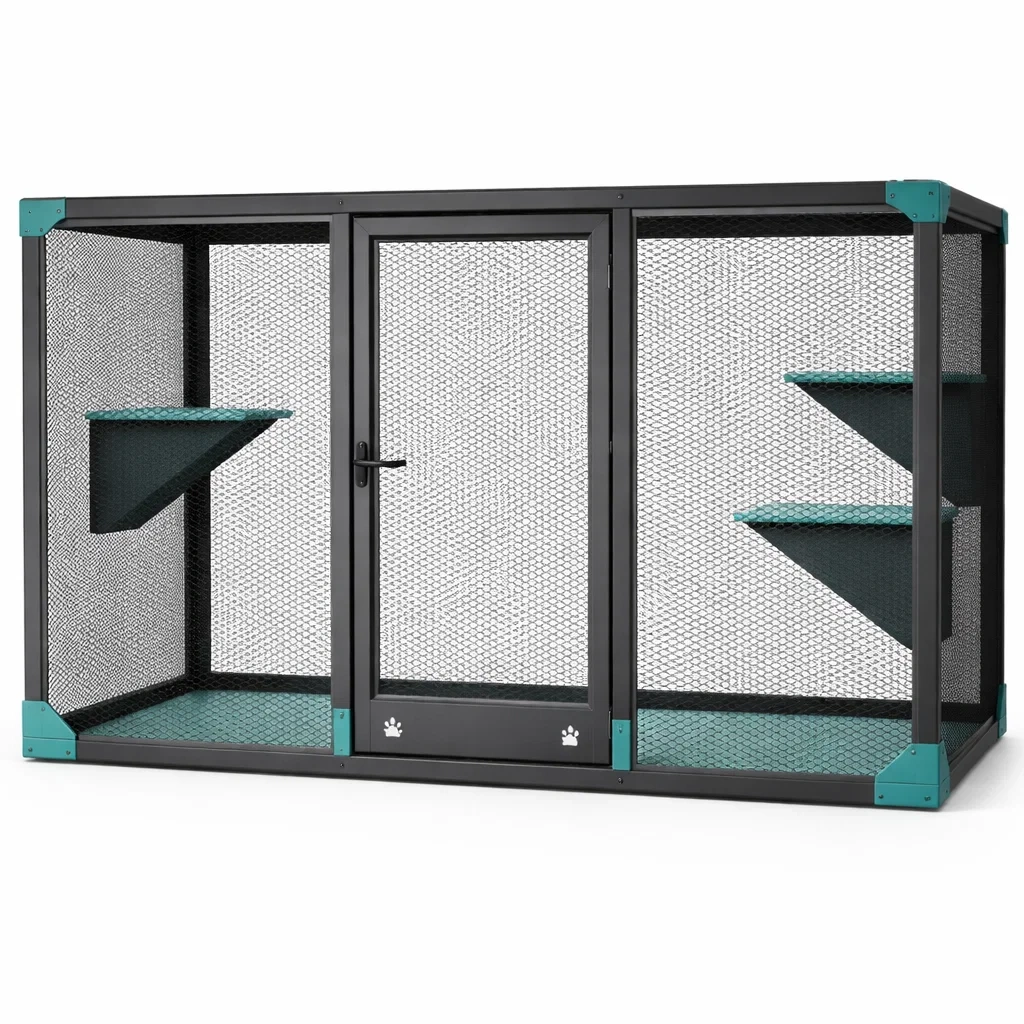 Caractéristiques : espace sécurisé avec étagères intégrées, adapté pour chats et petits chiens. Assemblage requis