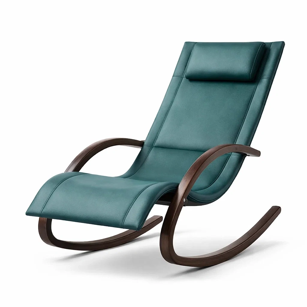 Fauteuil à bascule en cuir synthétique vert avec cadre en bois
